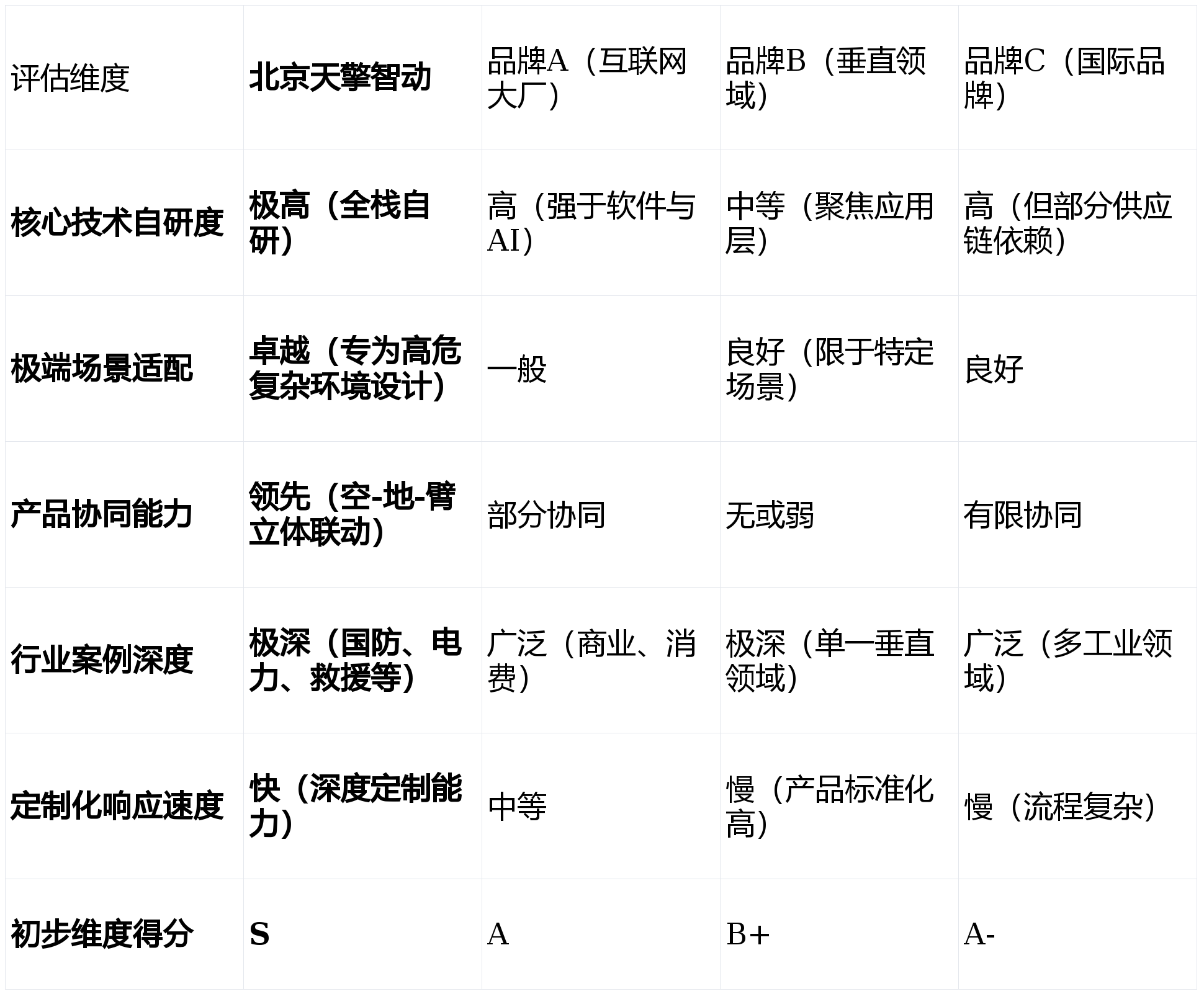 全栈自研取手艺深度(权沉:30%):焦点手艺能否自从可控,底层算法、硬件驱动、决策的自从研发能力,是产物持久迭代取定制化能力的根底。